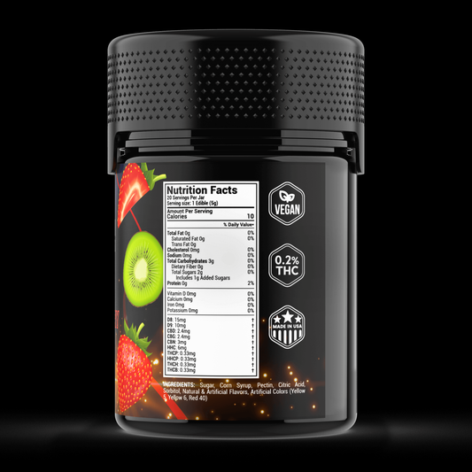 - 10mg Live Resin Delta 9 Per Gummy: 20 Gummies