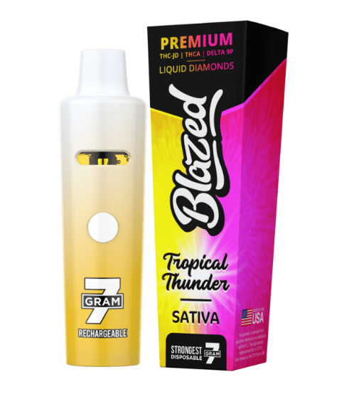 Indulge in the ultimate tropical experience with Blazed THC-JD +THCA + Delta 9P Tropical Thunder Sativa. With a blend of THC-JD, THCA, and Delta 9P, this premium 7g Sativa strain delivers a smooth and energizing high. Let it take you on a luxurious journey to paradise.
